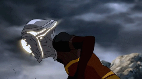 P’Li, the most powerful (and tallest, and coolest) of Zaheer’s companions, meets her end in the only way a combustion bender can. She blows herself up. Lin and Suyin reforge their sisterly bond by pulling a tag team move on P’Li, ending with Su wrapping a piece of her armor around her head just as she’s about to bend. The result is explosive, and reminiscent of Combustion Man from The Last Airbender. I really love P’Li, and I’m sad to see her go. But, her death is unavoidable, and at least she gets to go out in a totally spectacular way.